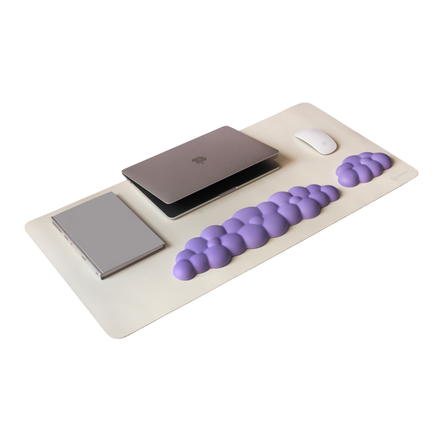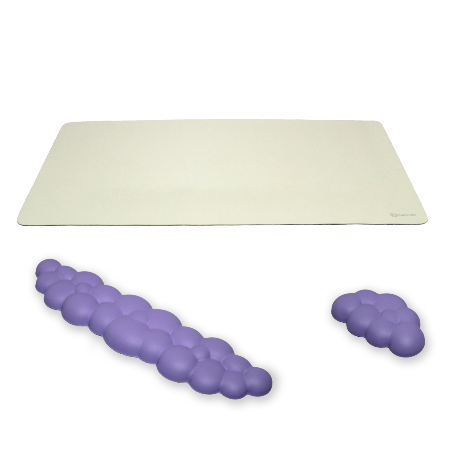 Con un diseño más suave y elegante , este protector color crema de 80x40cm y de una textura sedosa que lo caracteriza junto con los reposamuñecas en morado pastel , son ideales para aportar alegría y delicadeza a tu oficina.
